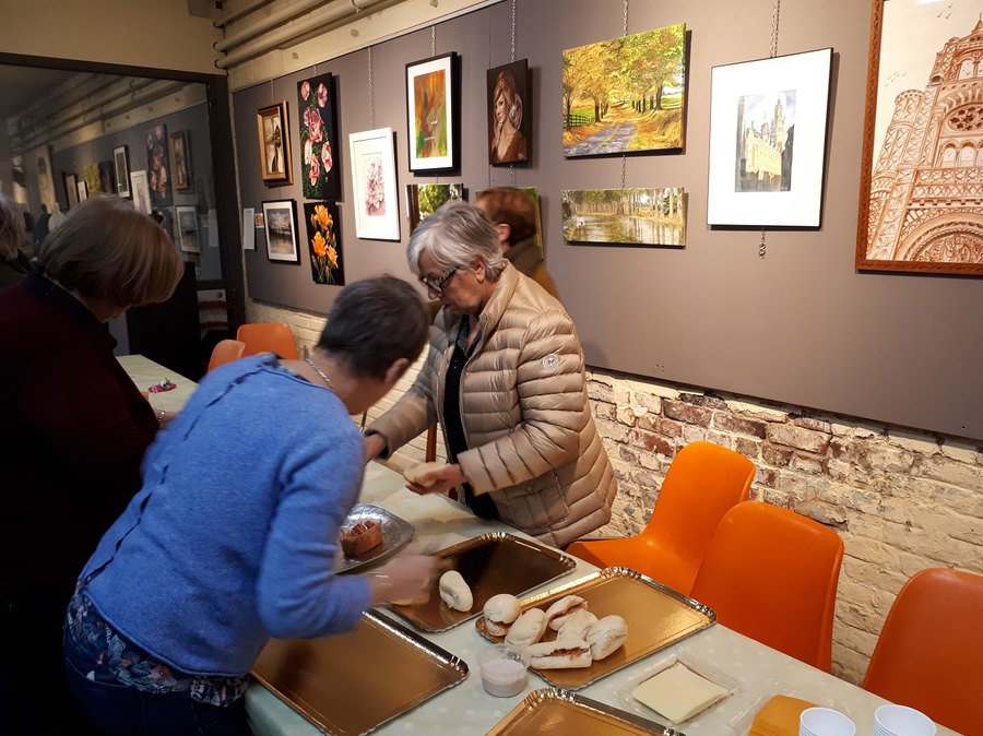 Création d'une galerie éphémère où sont exposés des oeuvres d'artistes de l'atelier.