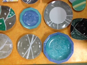 Quelques photos des travaux réalisés pendant le stage de peinture sur porcelaine animé par Maryse.